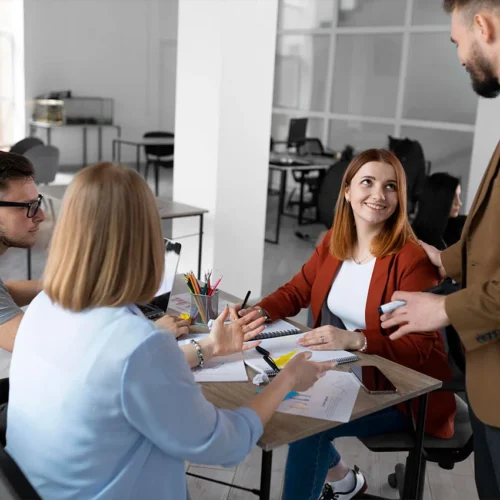 Experienced people serving to clients .